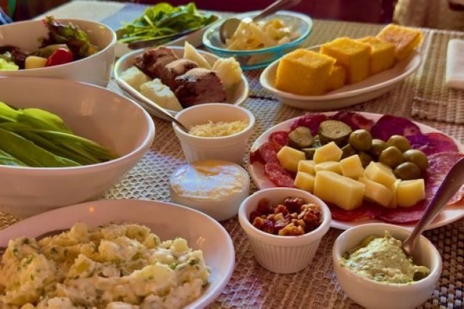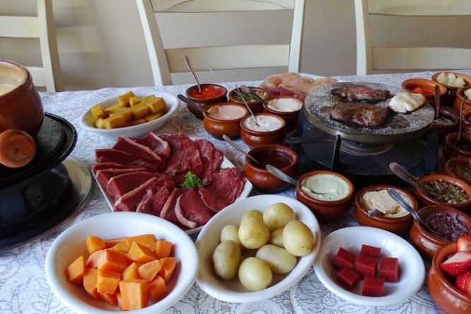 A DICA DA SEMANA é para você conhecer o PARADOURO, localizado na encosta da serra, no coração da Rota Romântica, paralelo a Br 116, sentido Porto Alegre/RS | Nova Petrópolis/RS. Com uma vista espetacular com área arborizada e espaço para a criançada, é destino e parada obrigatória para quem sobe a serra gaúcha. A grande pedida deste encantador restaurante é experimentar a culinária típica alemã e suíça, preparada com produtos da região e preço convidativo. O cardápio conta com o famoso Einsbein (joelho de porco), porco assado, matambre, grelhados, xixo, rodízios de carnes nobres, bolinhos de batata, saladas, geleias caseiras e um bufê com deliciosas sobremesas, entre outros. Nas noites frias, a partir das 19h, uma deliciosa sequência de fondue faz o maior sucesso. Possui amplo estacionamento e aceita reservas para formaturas, casamentos e eventos empresariais. Atende aos sábados e domingos a partir das 11h. E feriados, sempre é bom dar uma ligadinha antes.