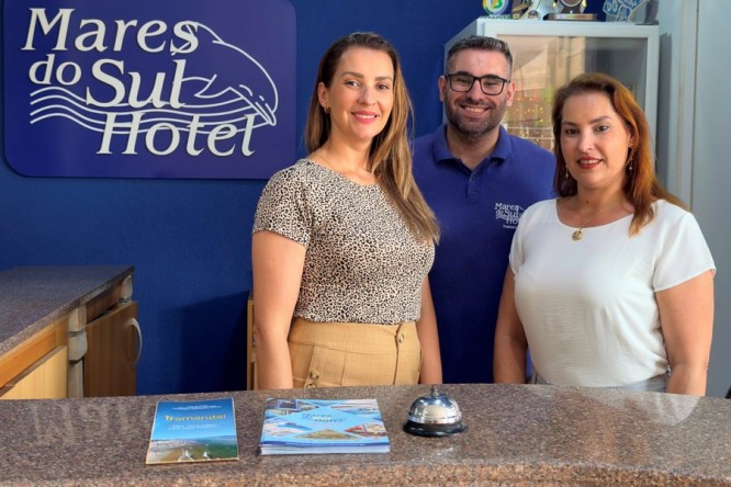 Ao lado da família, CLAUDIA MATIAS MOREIRA, CAMILA MATIAS e MATHEUS MATIAS, comandam o MARES DO SUL HOTEL, localizado no coração de Tramandaí/RS, que fica aberto o ano inteiro com ampla estrutura de dar inveja. A preocupação com o meio ambiente é um dos pilares da direção que utiliza energia limpa e renovável, utilizando placas solares para o aquecimento da água que abastece todo o hotel. Você pode iniciar seu dia com delicioso café da manhã que é um verdadeiro café colonial, curtir a piscina térmica, ou se preferir, tomar sol na piscina externa ao ar livre ou ainda fazer uma caminhada. Com decoração estilo praiano, possui elevador e quatro amplos salões climatizados, para festas, eventos e congressos. Conta ainda com confortáveis salas de estar em cada andar do hotel e Wi-Fi em todas as dependências, sem custo adicional. Espaço kids não poderia ficar de fora para a criançada se divertir, enquanto os adultos podem desfrutar do espaço fitness ou tomar aquele chimarrão no deck, ou ainda circular pelo museu do hotel, que é uma viagem ao passado. Com amplos quartos a sua escolha, você poderá optar pelo standard, standard superior, standard adaptado, luxo ou tamanho família, com tv, frigobar, ventilador de teto, ar condicionado, Split, mesa auxiliar para notebook, secador de cabelo, espelho grande e Wi-Fi, e todos os carros ficam em estacionamento interno e coberto. Então, antes de escolher um hotel, lembre-se que, no MARES DO SUL HOTEL, está incluso nas diárias, um delicioso café da manhã, piscina térmica coberta, piscina ao ar livre, espaço kids e fitness, sala de jogos, sala de leitura e chimarrão, Wi-Fi, estacionamento e serviço de camareira