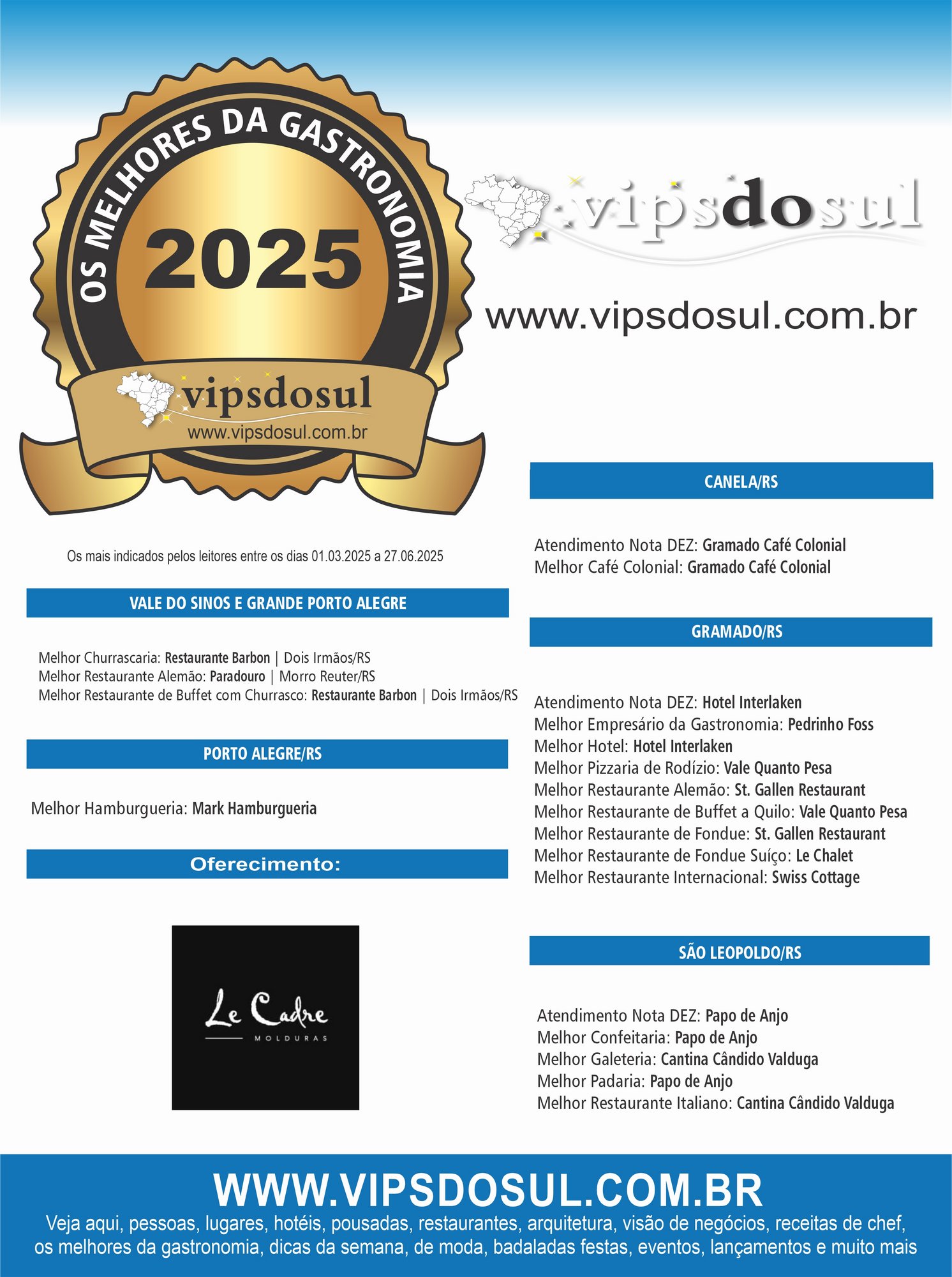 OS MELHORES DA GASTRONOMIA | VIPS DO SUL 2025, indicados pelos leitores